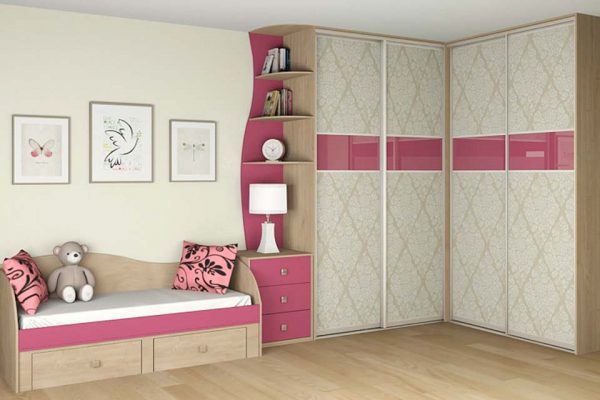 | Фасад | Раздвижная система Senator, комбинация фотопечать и стекло лакобель, парус, открытые радиусные полочки |