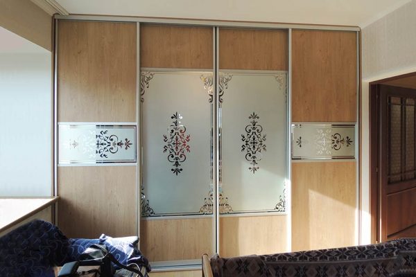 | Фасад | Раздвижная система Senator, комбинация ЛДСП и вставки зеркало с пескоструйным рисунком |