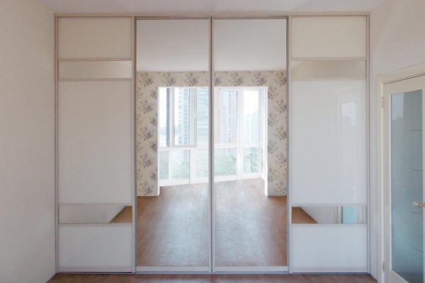 | Фасад | Раздвижная система Senator, комбинация стекло белый лакобель и зеркало |